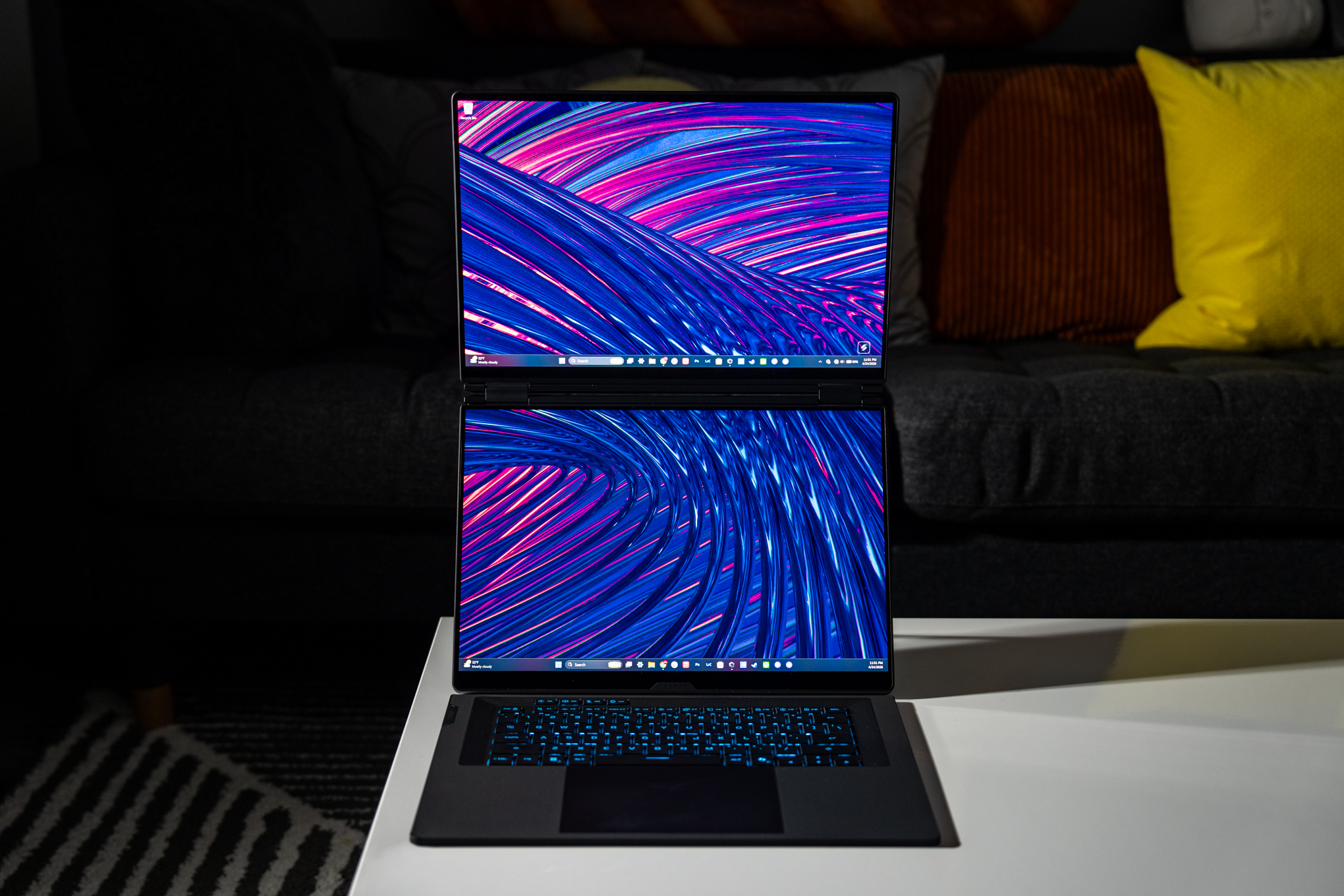 This laptop has a lot going on: two full-size 16-inch OLEDs, a top-of-the-line Nvidia RTX 5090 Laptop GPU, a near-top-of-the-line 16-core Intel Panther Lake chip, plenty of ports (including an SD card slot), and a great keyboard and trackpad you can remove and use via Bluetooth. These are pricey features, and that’s before you consider whatever the 32GB of soldered RAM and 1TB SSD inside it costs these days.