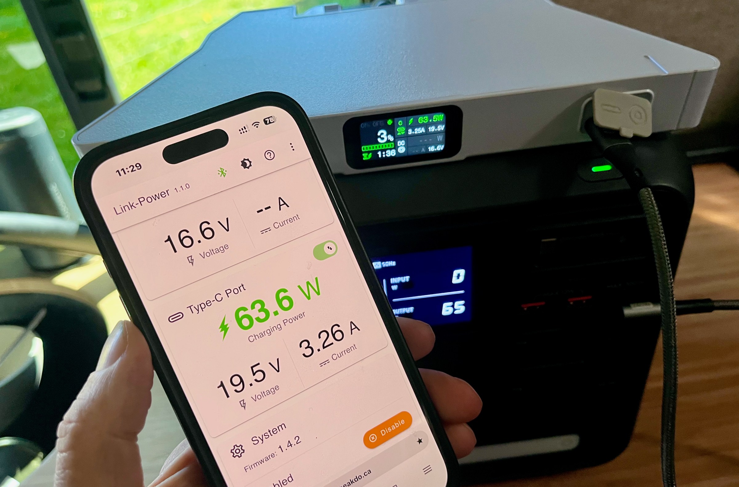 By default, charging the LinkPower 2 battery over USB-C tops out at 65W, needing about one hour and forty minutes to fully recharge. You can also set the max charge rate to 100W in expert mode if you want to speed up charging while potentially degrading the battery’s lifespan. USB-C charging is the fastest, followed by a 57W charge I saw over the DC barrel jack, and 55W charge over the magnetic dongle. In a pinch, that bidirectional USB-C jack also lets the LinkPower 2 act as a traditional power bank to charge your phone or laptop at up to 65W.